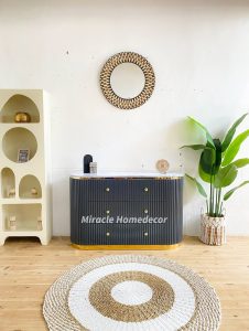 Tambahkan sentuhan hijau dari tanaman hias untuk memberikan kesan segar dan hidup. Letakkan di sudut ruangan atau di atas rak minimalis. Selain mempercantik ruangan, tanaman juga bisa membantu membersihkan udara di dalam rumah.Â